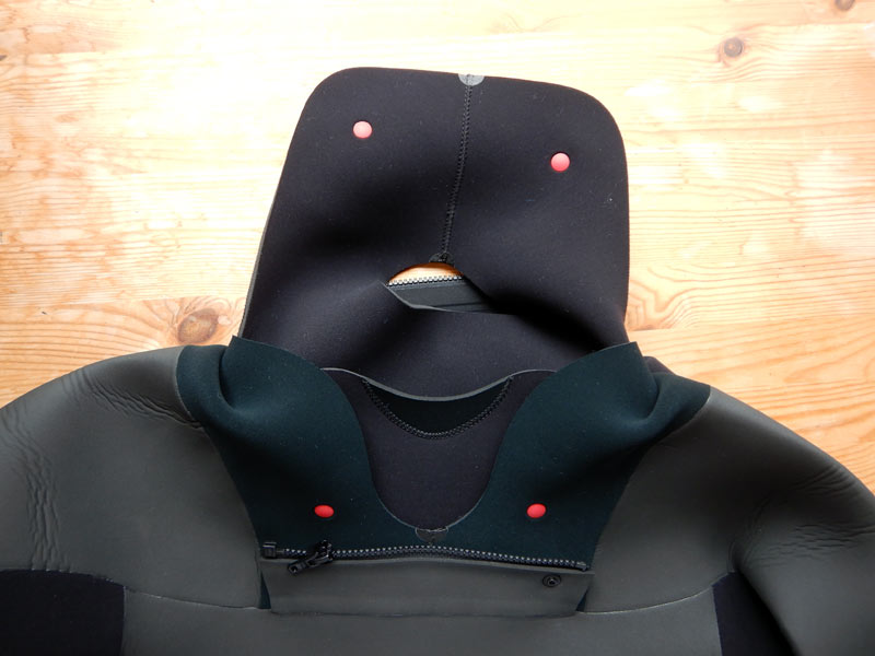 首回りはきれいにフィットしますので、海水の侵入は少なそうです。さらに海水を入りにくくする折返しネックのオプションもあります。