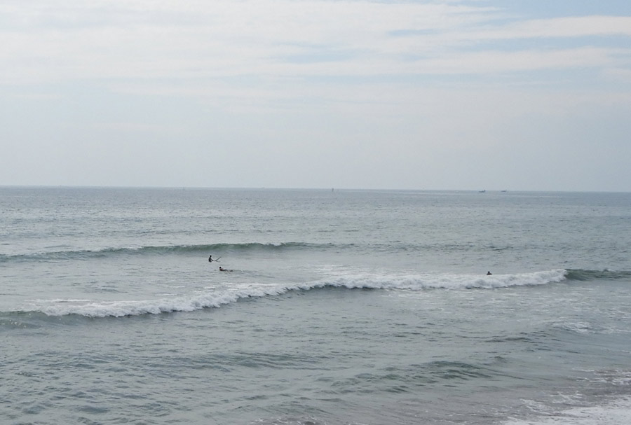 午前中はシェイプルーム。それから海へ。いい流れですが、昨日は逆が良かったかな。オンショアは仕方ありませんが、なんとなく潮が足りない感じです。それでもモモくらいで割れて、なんとか滑ることができそうなので入ります。お日様がある昼間は、まだショートジョンで平気です。