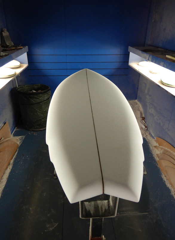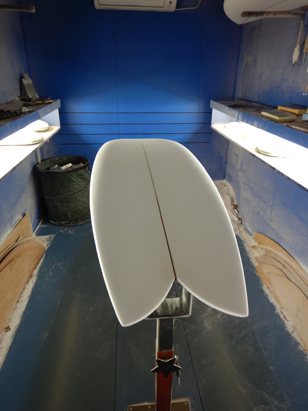 午前中は出来上がったボードをピックアップして、シェイプ中のボードをチェックしてきました。ストックのフィッシュとオーダーいただいたニーボードの二本です。