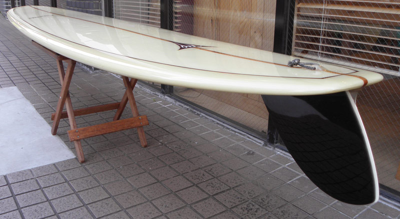 OWL SURFBOARDSのクラシックなPIGのユーズドボードが入荷しました。きれいなアウトラインでかっこいいです。レッドウッドのストリンガーにグラスオンされたDフィン。正しいピグです。自分で乗りたいです 笑。
