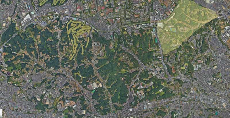 いつも走っているエリアは黄色く色付けしたエリアです。全体の3分の1にもなりません。緑が残されているのは、ほとんどが町田市です。都心のすぐ近くでこれだけトレイルが残されているのはありがたいことです。