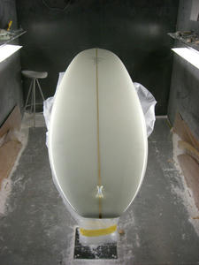 今日はKKとCCのかけもちで忙しい一日でした(かけもちしてゴメンナサイ)午前中はKKことカツカワミナミさんのシェイプルームへ。Kさん、オーダーいただいたロングボード出来上がりました。クリアのボードってすっきりしていてカッコイイです。