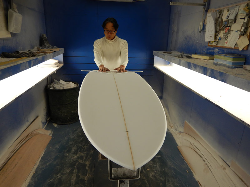 ショップのオープンは2001年。それ以来、ロングボードをベースに、フィッシュ、ボンザー、シングルフィン、ニーボード、パイポとさまざまな種類のサーフボードを作り、試してきました。