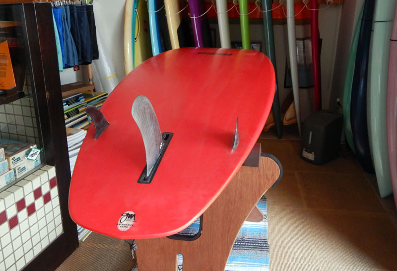 ウィドウメーカーなんていうと、パワフルなサーフィンのイメージがありますがボードのサイズ的には普段の波乗りから使えると思います。アンドリュー・キッドマンの「SINGLE」でデイブ・パーメンターがステファニー・ギルモアにチャネルのシングルをシェイプしていますが、あれはもっと細身でした。このボードは私でも楽しめそうなサイズです。もしかするとデイブ・パーメンターは日本向けのサイズにしたのかもしれません。