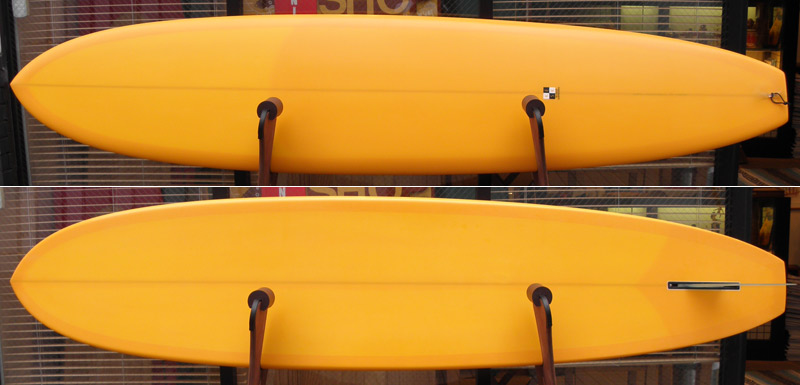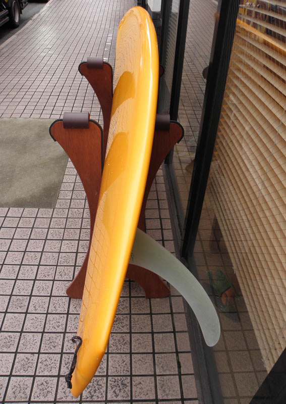 マンゴーイエローのロングボード、見に来てください。きれいですよ。