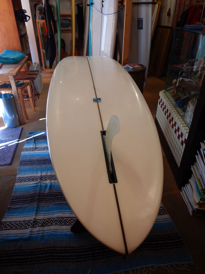 60数年前、サーフボードが短くなっていった原因のひとつにニーボードの影響もあります。ニーボードの影響で短くなったサーフボードが現代の形に進化した流れにあるのが「ハル」です。それを逆方向に、コンケーブやエッジという進化の過程で生み出された技術を残しながら、その流れをさかのぼってニーボードに戻ってみたという訳です。