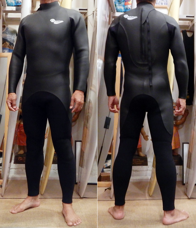 年配の方ほどそうかもしれませんが、5/3ミリのウェットは動きにくいと思っていませんか?自分自身もそうだったので、実際に試してみようと自分用に5/3ミリを作ってみましたが、全然そんなことはなく古いトラウマはきれいに消えて無くなりました。見に来られた方も実際に持ってみて「軽い」と言ってましたが、素材の進化のおかげだと思います。