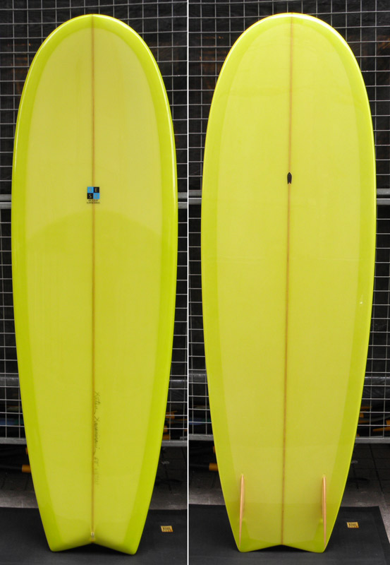 オーダーされた方のリクエストで、ぶつけて壊しやすいテールの角を丸めにシェイプしています。浮力はブギーですからたっぷりです。速い滑り出しからスピードを付けやすい、というか勝手にスピードがついてしまうのもブギーの特長です。
