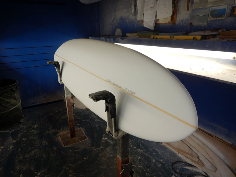 オーダーいただいたプリモのシェイプが出来上がりました。レングスは、7’2”です。今は当たり前に作っているシングルフィンのプリモですが、最初に乗ったときはかなり衝撃的でした。