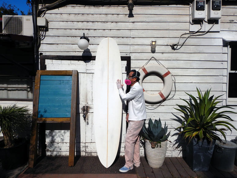 ショップのオープンは2001年。それ以来、ロングボードをベースに、フィッシュ、ボンザー、シングルフィン、ニーボード、パイポとさまざまな種類のサーフボードを作り、試してきました。