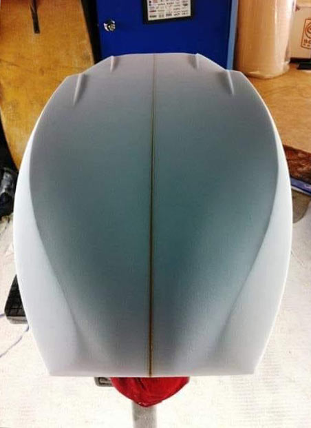 ノーズに少しロッカーを付けて、ボトムはコンケーブでレールにエッジを効かせます。シンプルなシェイプのコンケーブボトムにレールエッジが効いているボトムが滑る感触。腹ばいだと滑る感触とスピード感が増幅されます。そんなことを想像していると、もう堪らなくなってくる私はやっぱり変な人だと思います。