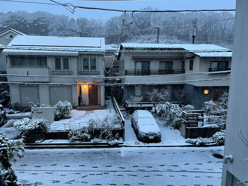 朝、起きたらあたりはすっかり雪化粧。ちょっと前までは真っ暗だった時間です。明るくなるのが少しずつ早くなってきました。この雪でなごり雪になるのかな?