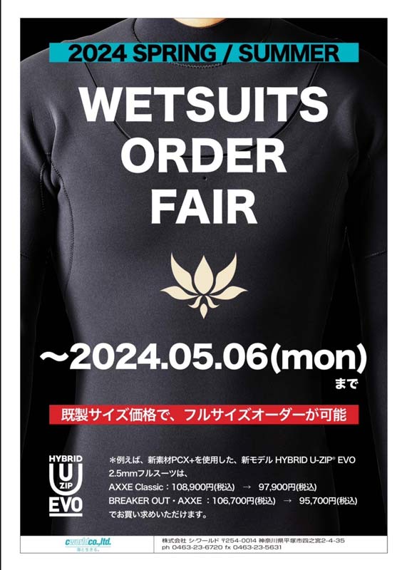 AXXE CLASSIC フルスーツをオーダーいただいた方に、もれなくウェット専用ハンガープレゼント!