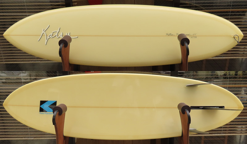 それから、KK FISH 5’8”。イエローティントでボトムはクリアです。ロゴはホワイト。