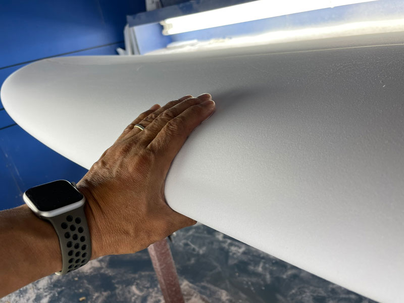 ミッドレングスサイズのTOTOのシェイプが出来上がりました。イメージしていたとおりのきれいなアウトラインが出来上がりました。レングスは7’7”です。