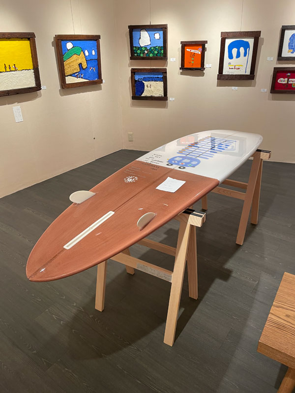 一昨日のブログの九州からのお客さまは、鹿児島のEBISU SURFのボスであり、シェイパー&グラッサーの後夷さんでした。今回は種子島在住のアーチスト、松田大児さんの個展に合わせてのご来京でした。