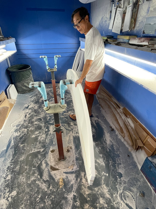 ショップのオープンは2001年。それ以来、ロングボードをベースに、フィッシュ、ボンザー、シングルフィン、ニーボード、パイポとさまざまな種類のサーフボードを作り、試してきました。