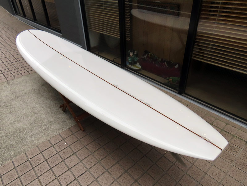 変わったところは何もありません。それでもスムースなラインで伸びるアウトラインは美しく、極めてシンプルなボトムデザインにはシェイパーの自信が見て取れます。乗るのが楽しみです。