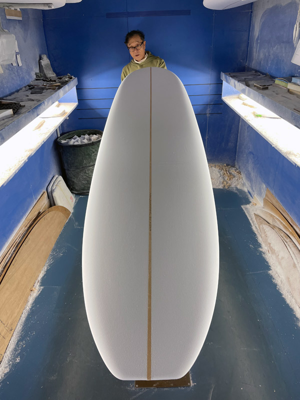 ショップのオープンは2001年。それ以来、ロングボードをベースに、フィッシュ、ボンザー、シングルフィン、ニーボード、パイポとさまざまな種類のサーフボードを作り、試してきました。