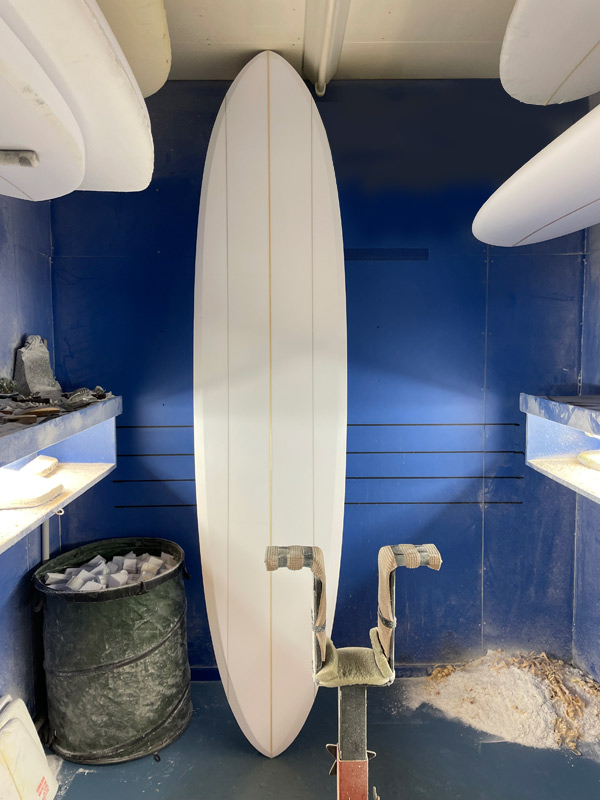 このプリモはグルーラインのスリーストリンガーにプラスしてフィンにもこだわり、ワンオフで色を入れて作るプリモフィンがグラスオンされる予定です。出来上がりが楽しみです。