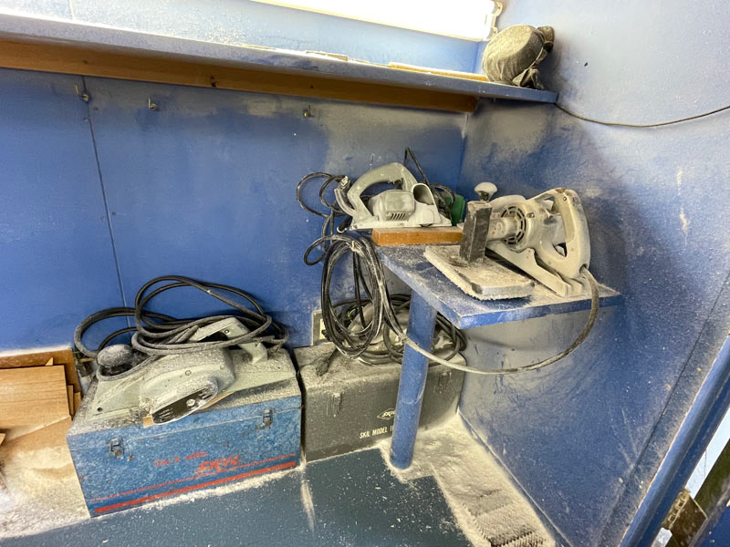 いつもより甲高く細い音をさせていたのは、台の上に置かれた小さなプレーナーでした。隣はSKIL100で、下に見える大きいものは70年代の日立製です。