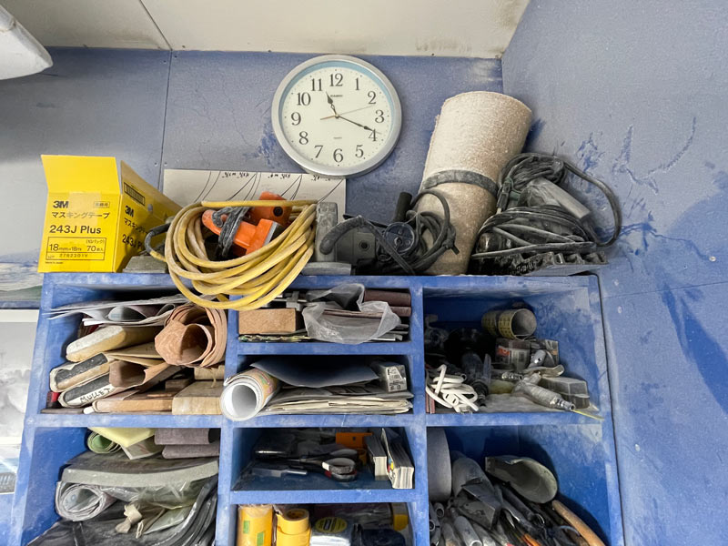 他の音ならノックしてドアを開けますが、プレーナーのときは邪魔しないように音が止むまで待ちます。回転するモーターの音が止んで、重いプレーナーが台の上に置かれる音が合図です。