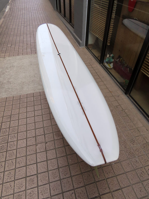 B52ノーズライダーが出来上がりました。レングスは9’6”。ノーズをほんの少しだけ絞り込み、PIGの雰囲気もあるきれいなアウトラインです。