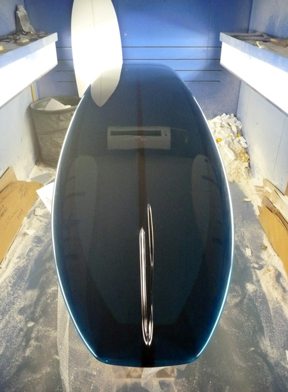 赤いタンカーは最高のグライドでした。ブルーはDフィンのPIG。1/2インチのレッドシダーストリンガーで、60年代を意識した細身のアウトラインにフラットロッカー。二本ともデッキとボトムのラミネートを、通常よりも一層ずつ増やした重量級でした。