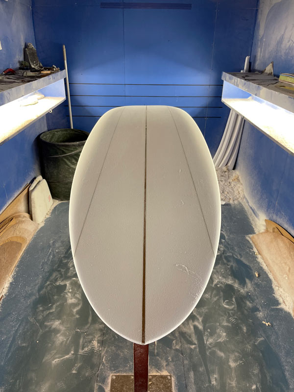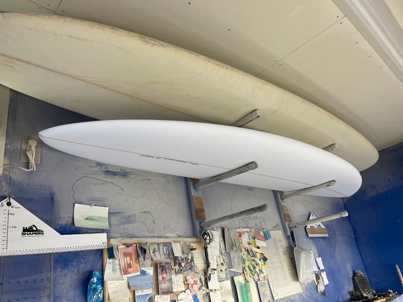 今回はそれに新しい試みを加えています。それが何かは出来上がってからのお楽しみということで。このロングニーはオーダーいただいたものですが、自分でも8’9”を頼んでいます。