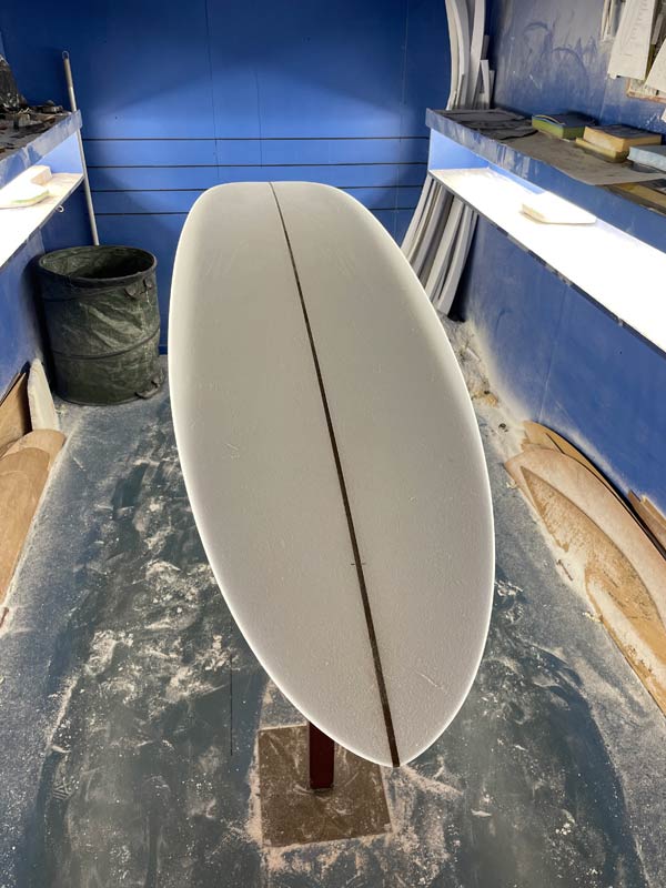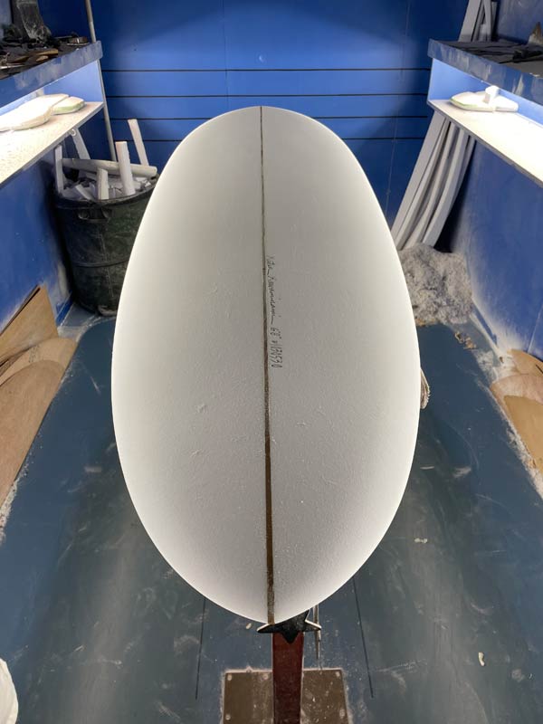 現在進行形で制作中のボードたち。まずは、MINIモデル6’8”。デフォルトのラウンドピンでのシェイプはストックボードです。