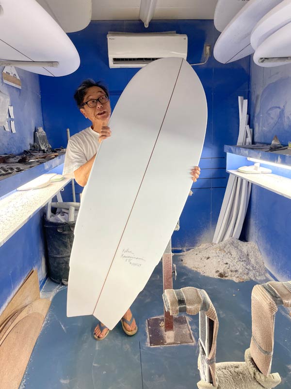 ショップのオープンは2001年。それ以来、ロングボードをベースに、フィッシュ、ボンザー、シングルフィン、ニーボード、パイポとさまざまな種類のサーフボードを作り、試してきました。