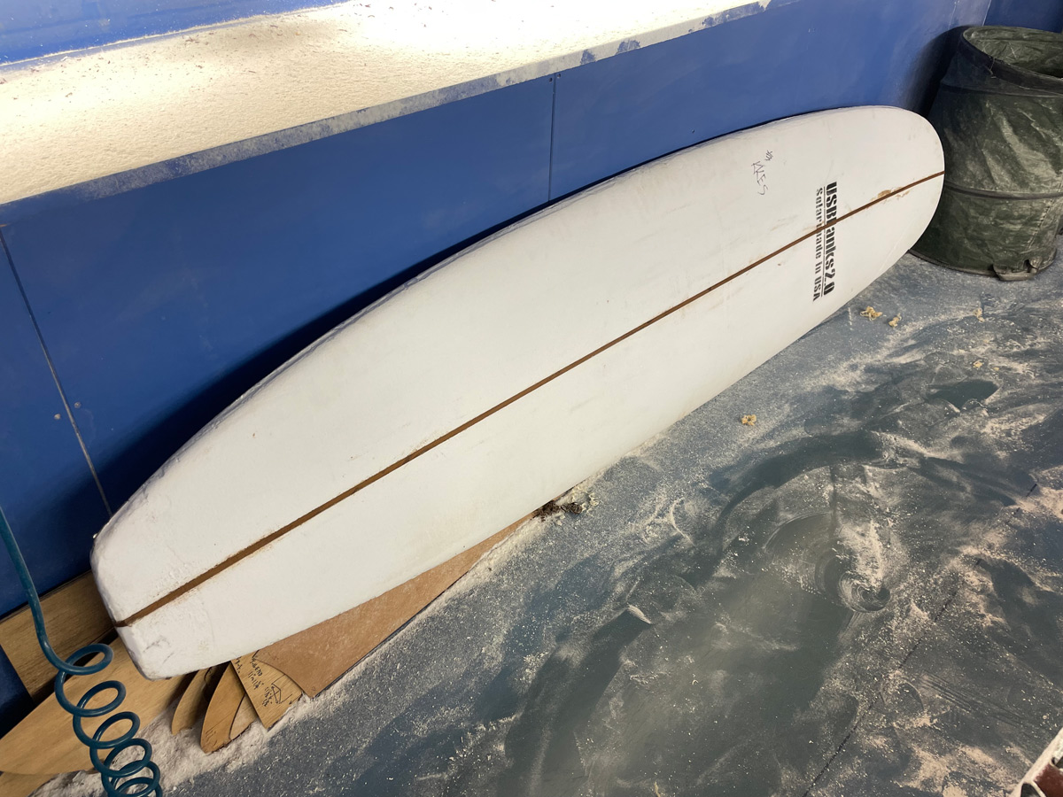 マイボードのラインアップからも外せないのがこのプリモのロングボードです。これもストックボードですが、すでにお声がかかっております。