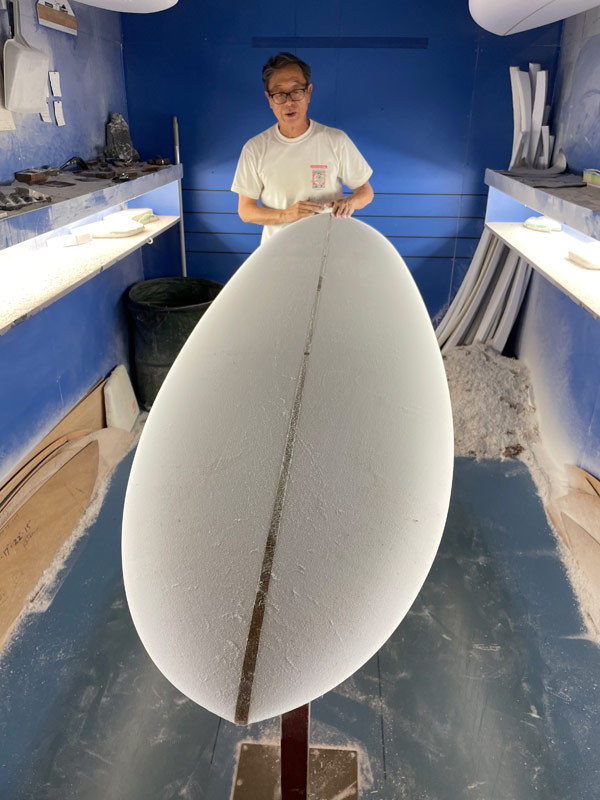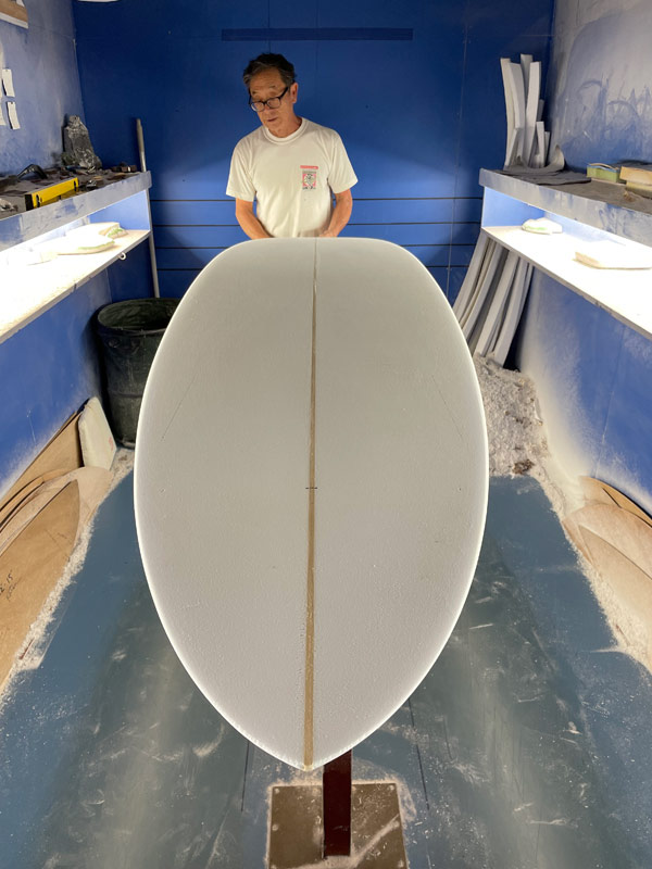 ショップのオープンは2001年。それ以来、ロングボードをベースに、フィッシュ、ボンザー、シングルフィン、ニーボード、パイポとさまざまな種類のサーフボードを作り、試してきました。