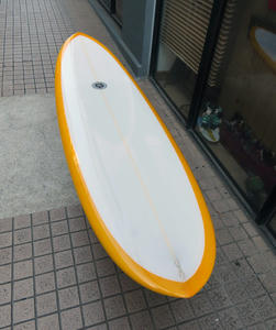ボトムはコンベックスのノーズから、浅いコンケーブに移行してテールへ抜けています。使っているブランクスやこのシェイプを見ているとシェイプの思想が伝わってきます。