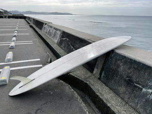 1967年製のニーボード、銀玉号です(別名、銀ガメ号)。レングスは5フィートちょっと切るくらい。