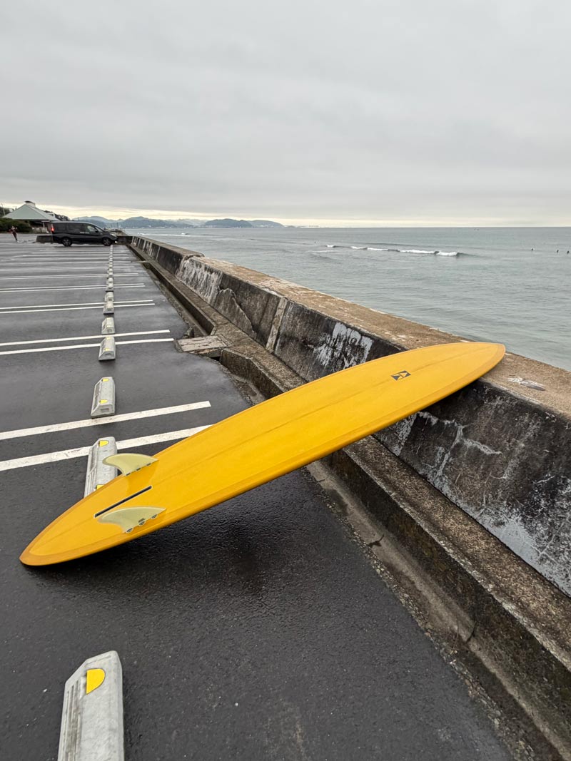 まったりやろうと、8’9”のロングニーボードを持ち出しました。このレングスでツインは初めてです。