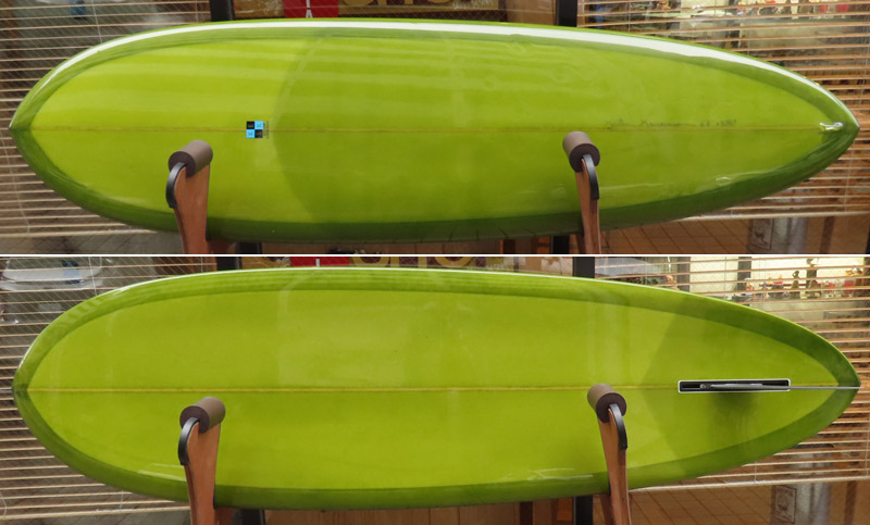 もう一本はB52モデル。ノーズライドを考えたロッカーを使用した、ノーズライダーです。テールはラウンドピンで、ノーズライドにコントロール性をプラスしています。