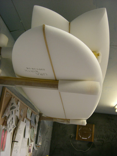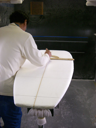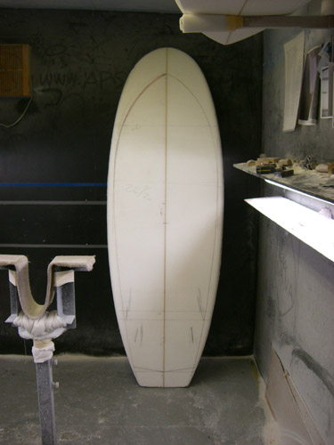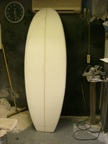 朝からカツさんのシェイプルームへ。Yさん、ロングボンザー出来上がりました。カラーもラミネートもシェイプばっちりCOOLです。写真撮りたいのでまだ取りにきちゃダメです(笑)