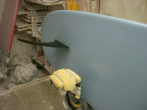 ノーズにフィンが付いているようにも見えます(笑)このテール、どこかで見たと思ったら私のシングルフィンのニーボードと同じです。大きなフレックスフィンが付きます。長さは7’6”だったと思います。