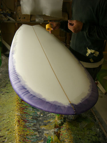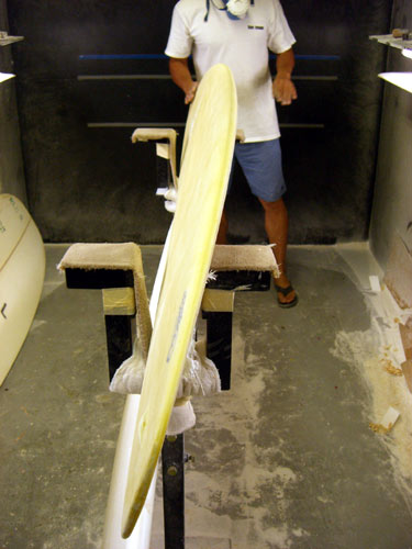 波は明日(19日)に期待して、今日は海も見ずにボード工場へ直行。カツさんは昔の彼女(?)のメールがハワイから届いたせいかゴキゲンで、いつもにましてノリノリのご様子です(笑)世界中のカツさんのお友達がメネフネサイトを見てくれてます。私、責任重大です。