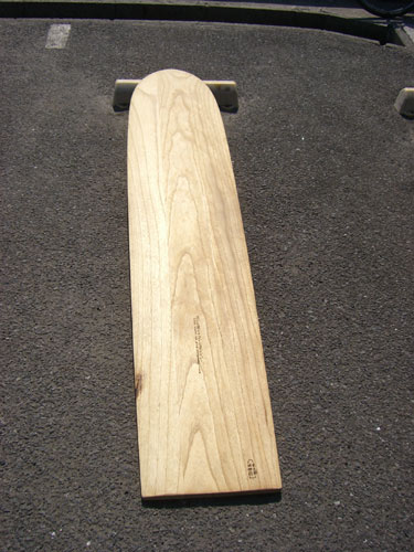 気持ちが良い天気なので海をみながら駐車場でボケボケしていると、怪しげな木材を抱えた人物が歩いてきました。アンドリュー・キッドマンの「ETHER」にも登場している桐のサーフボードを作っておられる、GEAR'Sのシェイパー、遠藤勇一さんです。これまでお話をしたことは無かったのですが、キャンセルになってしまった東北トリップには遠藤さんも行かれる予定だったので、「実は私も…」とお声をかけさせていただきました。