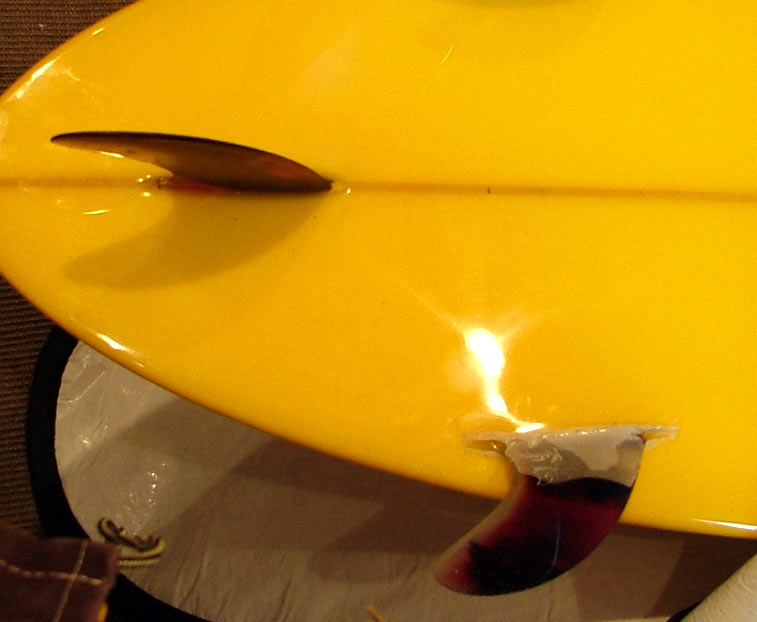 先週お渡ししたばかりのYさんのミニ!早くもこんなに見事にブッ壊しました。フィンがあらぬ方向を向いて、ベースのフォームにも大ダメージの重症です。ニューボードでこれはちょっと泣けてくる状況ですが、壊すのは使っていただいている証拠でもあります。明日からメネフネビーチストアのサーフボード病院のフィン外科に入院です。フィン外科の後は着色内科、形成仕上げ外科経由できっちりキレイに直してお返ししますのでご安心ください。全治一ヵ月半くらいの予定ですのでしばしご辛抱ください。