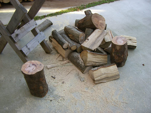 削り屑は腐らせて分解して畑の土に戻します。薪は完全燃焼するので大きな薪でも白い灰が少し残るくらいです。
