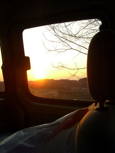 昨日、帰宅途中に見たきれいな夕日。パックされたフレックスフィン。