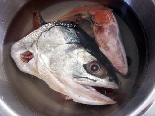 半分は焼きました。眼がなんとなく恨みがましくなりましたが、きれいに食べてあげるから成仏してください。氷頭の部分はナマスにしてもうまいのです。