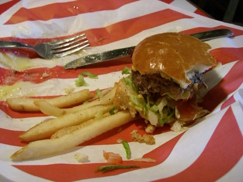 先日のパーティでカリフォルニアンたちが腹減ったーと言ってハンバーガーをうまそうに食べていたのを見ていたら、すっかりハンバーガーが食べたくなってしまいました。