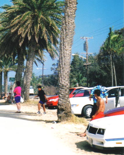 そしてサンセット・ビーチ。手前の赤い車のボンネットに腰掛けているのが私。