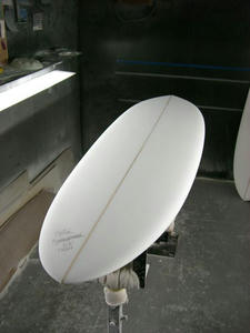 IREE BLUEさん用にレールとノーズをスペシャルチューンしています。活さん曰く、おっしゃれでゴキゲンなシェイプ♪作り手がストークする出来栄えです。ご期待ください。