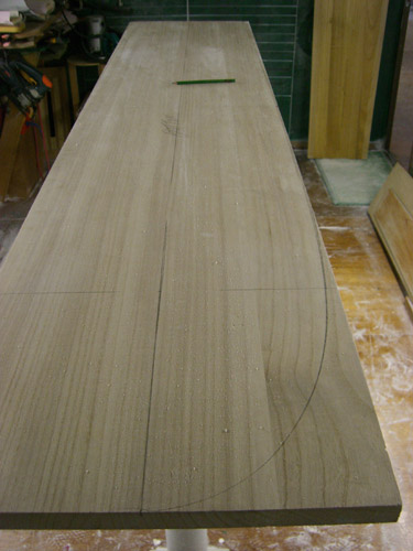 アウトラインができました。これで完成じゃありませんよ(笑)これからデッキを削り、ボトムを削り木の板を「サーフボード」にしていきます。ここからが大変な作業だと思います。