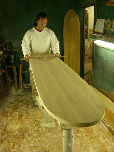縁あって日本のアライアマスター、遠藤勇一さんにアライアを作っていただくことになりました。シェイプをするのはウレタンフォームのサーフボードと同じなのですが、なんだかイケナイ世界に足を踏み入れてしまったみたいで少しドキドキしながら見学いたしました。